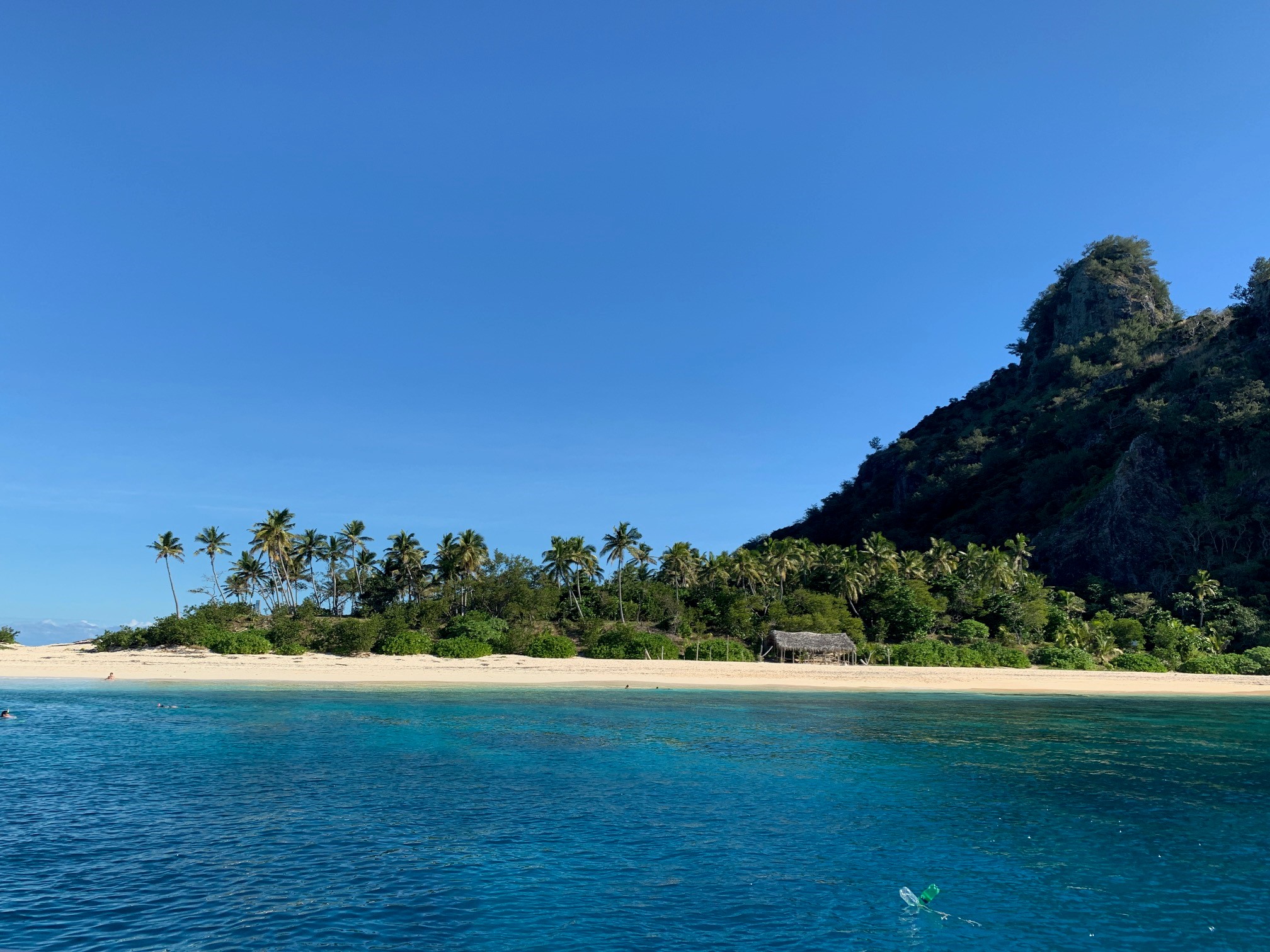 The actual tour stops at 2 smaller islands before Castaway for a short period of time. You can snorkel for a bit or you can just relax on the boat and help yourself to a drink.